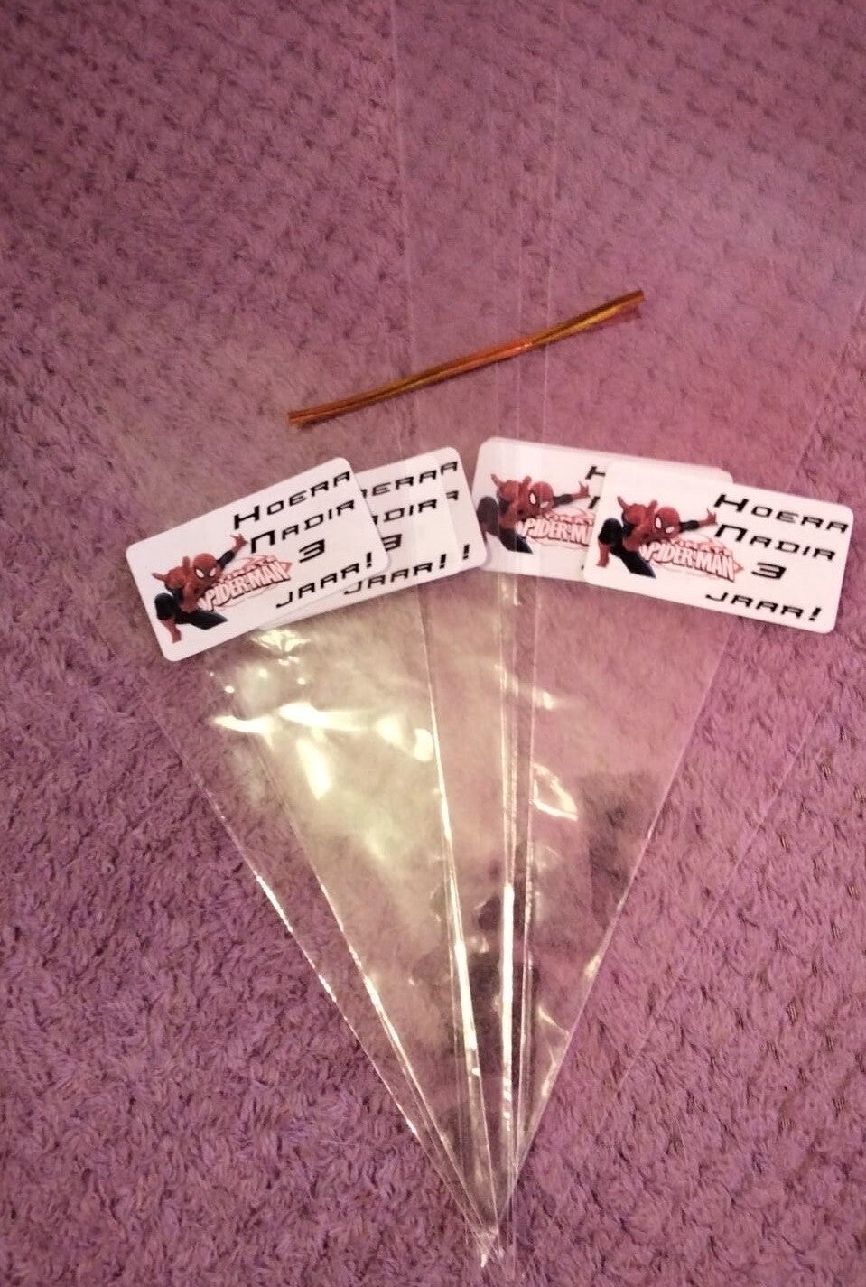 Uitdeelzakje puntzakje 37*18cm met etiket Superhelden - ontwerp naar wens